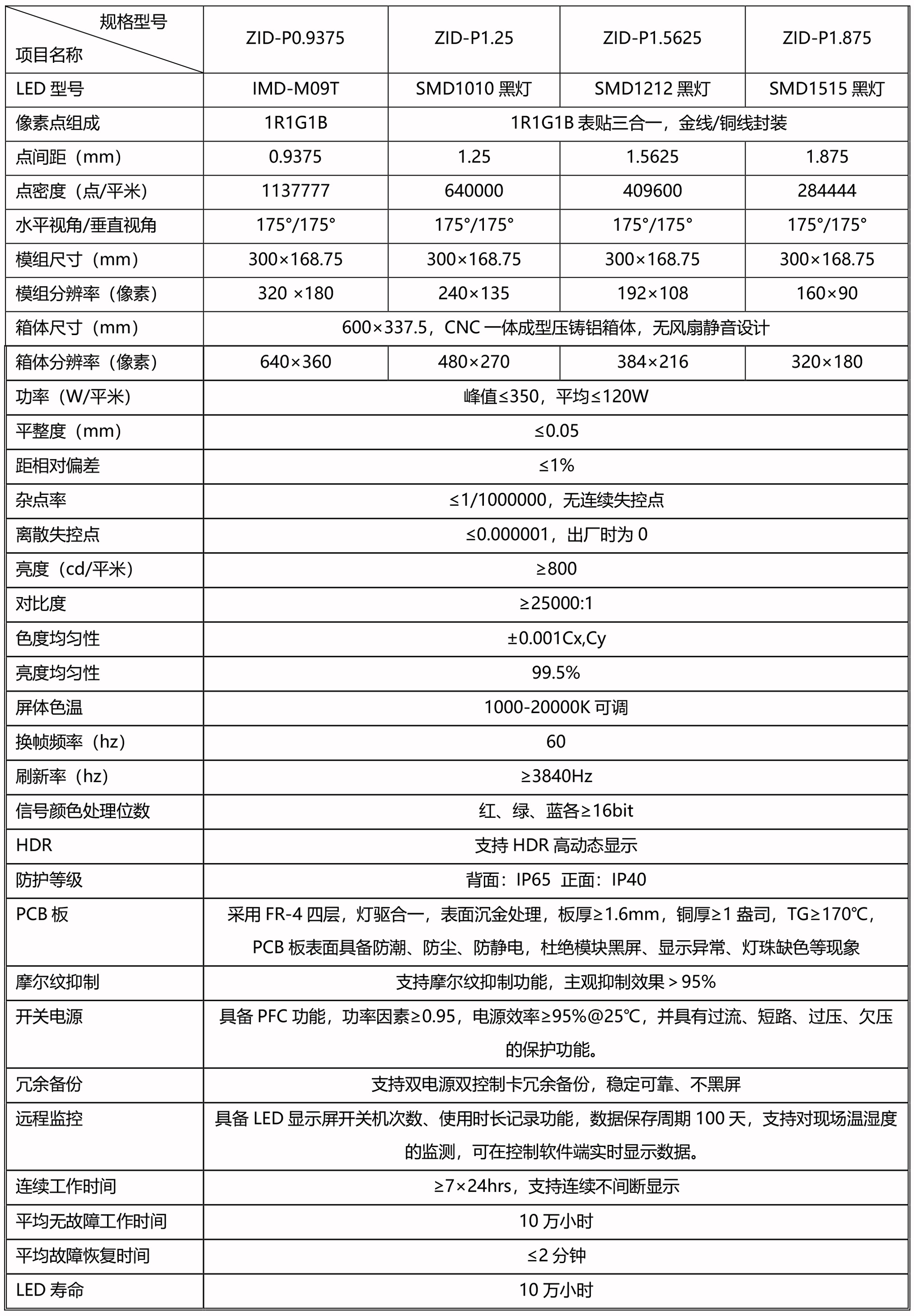 P0 9375、P1 25、P1 5625、P1 875 16:9完全前維護(hù)小間距LED顯示系列